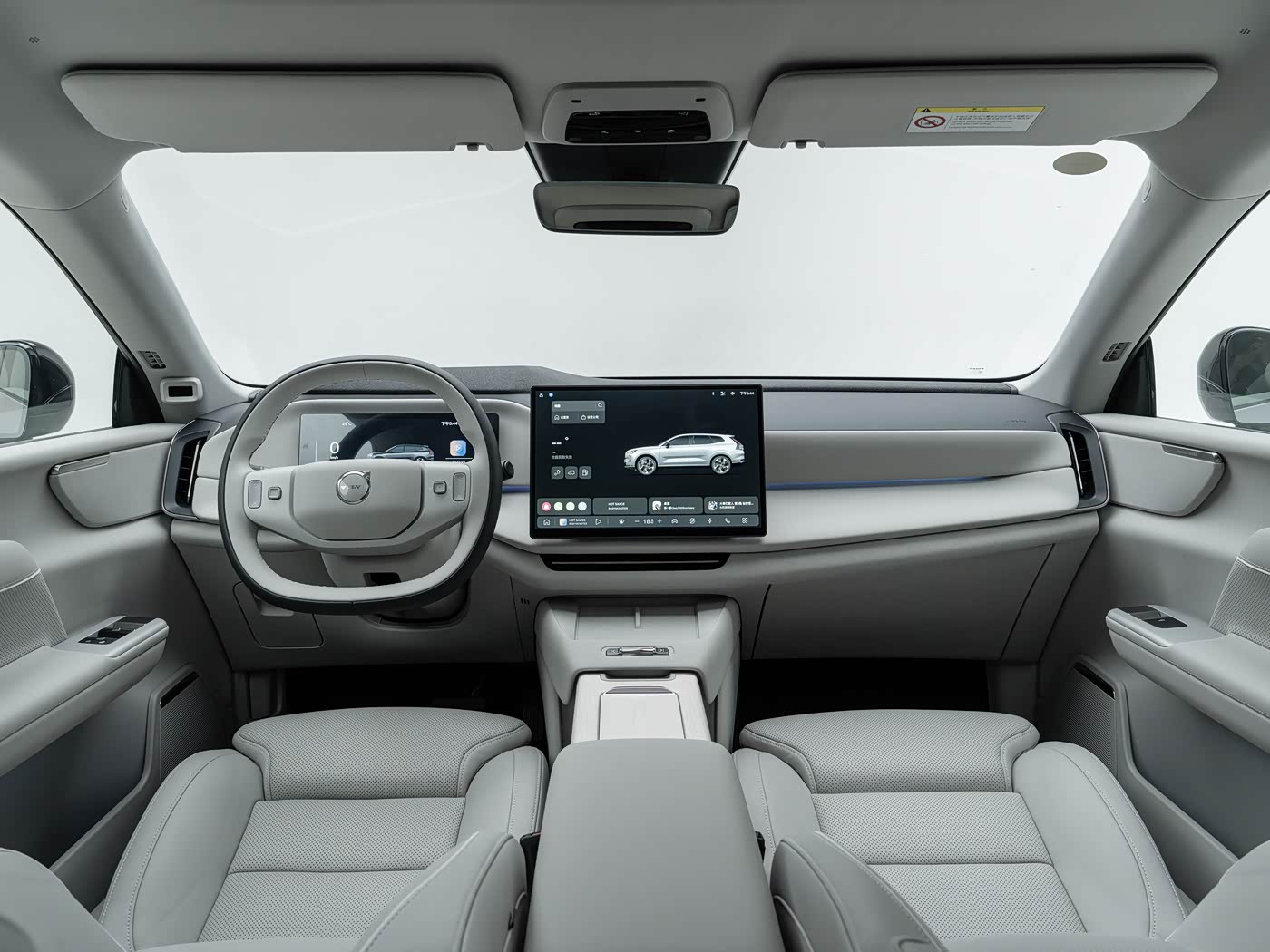来到车内,它采用了极简的风格,可以看到整个内饰只有大屏和仪表,前者尺寸为15.4英寸,后者则为12.3英寸,而且新车还有92英寸AR-HUD。细节方面,新车用线条勾勒出简洁清晰的几何轮廓,这样的设计,使得内饰的辨识度非常高。