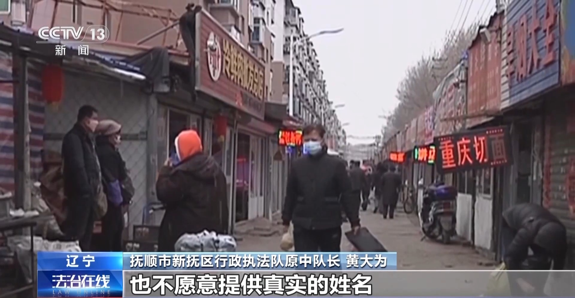 抚顺市新抚区行政执法队原中队长 黄大为:在对占道经营进行简易程序执法的过程当中,一方面部分被处罚对象不愿意配合,也不愿意提供真实的姓名。另一方面,也是由于当时工作量较大,只想着图自己方便,就没有按照规定登记被处罚对象的真实姓名。后续为了完善处罚和公示的程序,我们就编造了一些虚假的人名来应付工作,最终导致了错误的发生。